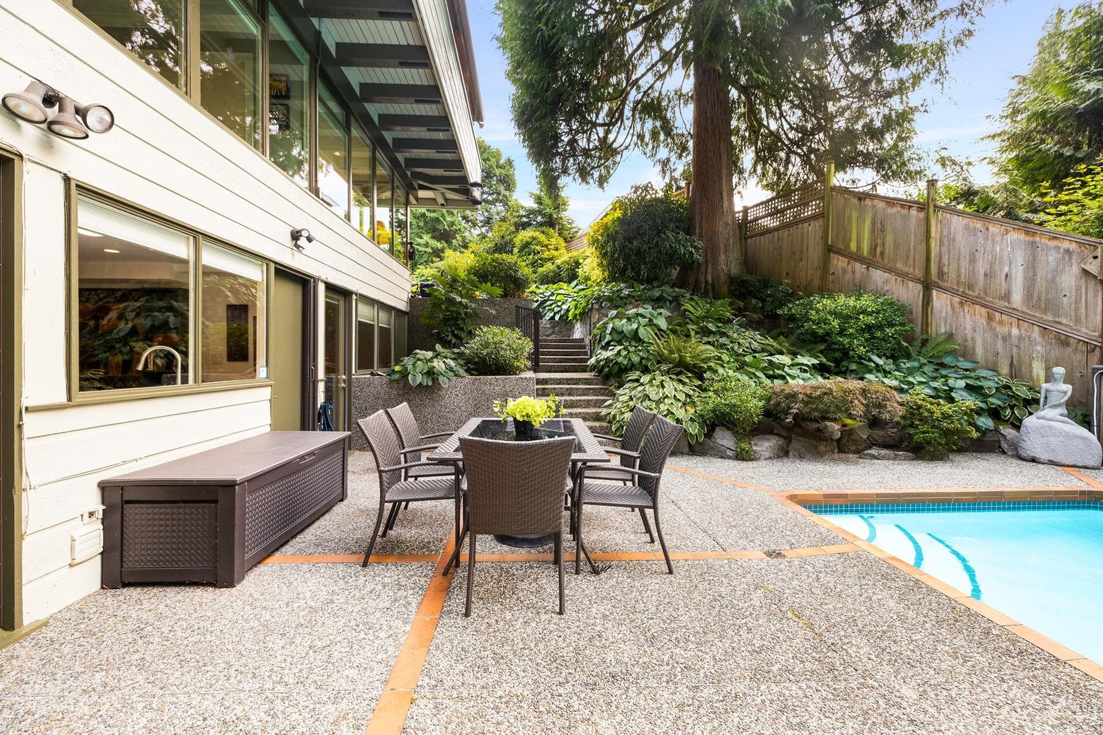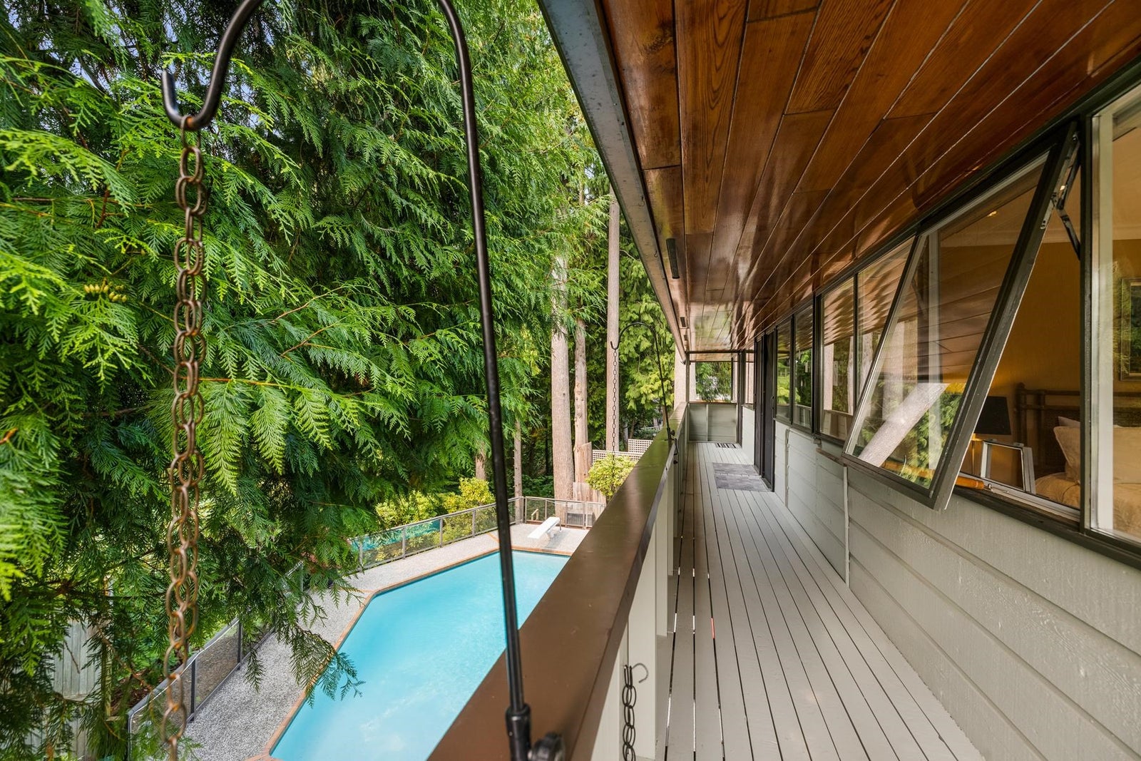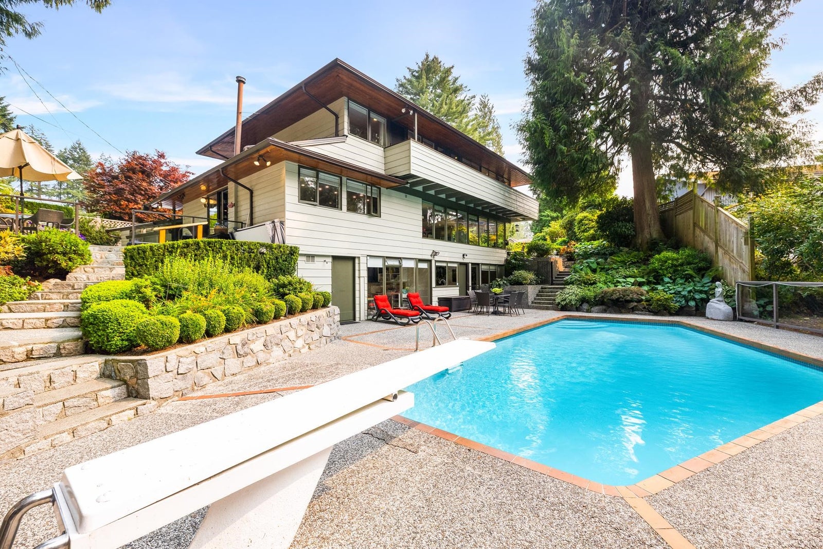 AN ENCHANTING FAMILY HOME! Spectacular established gdns, majestic trees, greenbelt setting, idyllic pool, hot tub & flagstone decks create the magic. Inside is immaculate & traditional w a unique MCM vibe. Sliders, fr doors, skylights, wrap around upper deck & lg windows bring the outside in. Inviting kitchen w dble wall ovens, gas stove, granite counters, sit at isl & skylights. Reimagined in 2014 w no expense spared: new kitchen & bathrms, exterior cladding, furnace, roof, b/u generator, 220 AMP electrical panel, H/W On Dem, real H/W flrs, gas f/p, laundry up. Stunning connection to sundrenched lot from every rm. Obsessively maintained inside & out, on highly coveted dble wide fam-oriented st. Centrally located-walk to Handsworth & Cleveland Elem. Min to Edgemont Vill, trails & skiing.