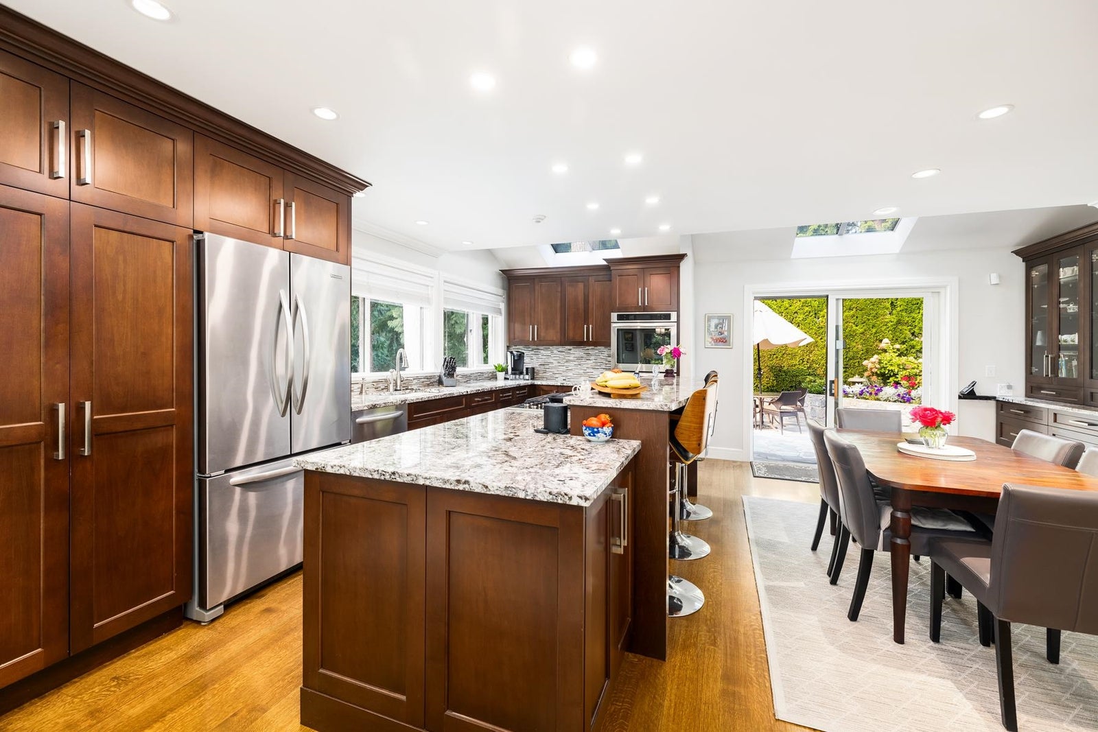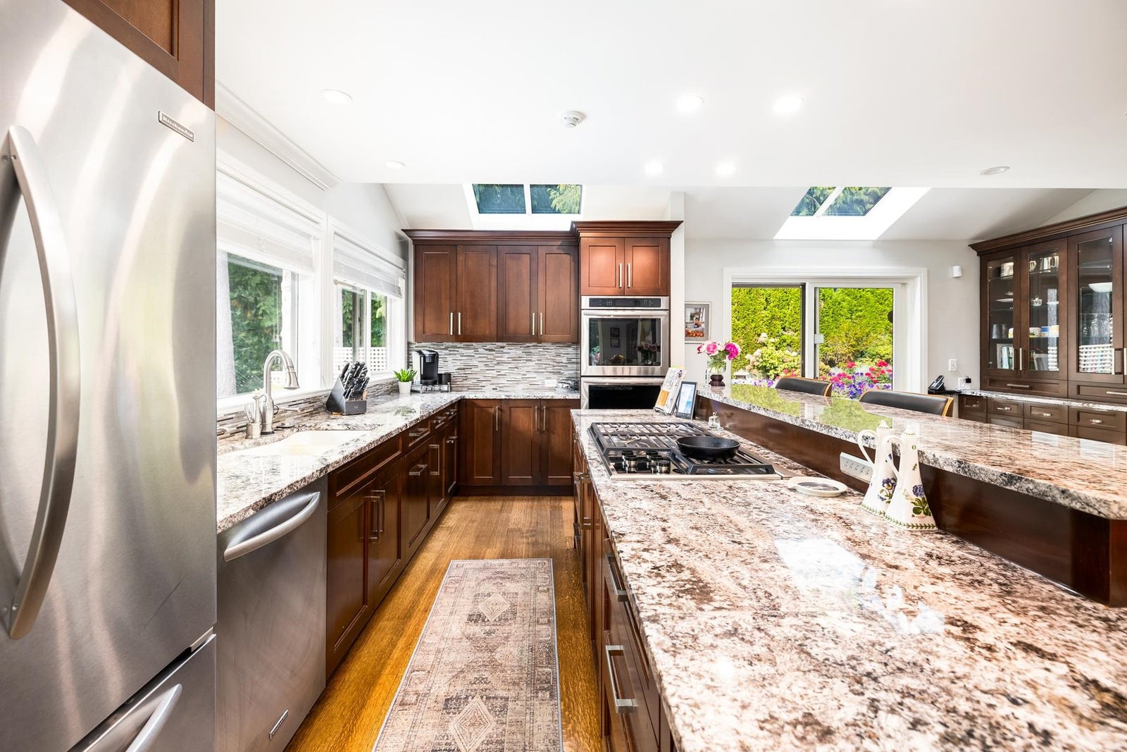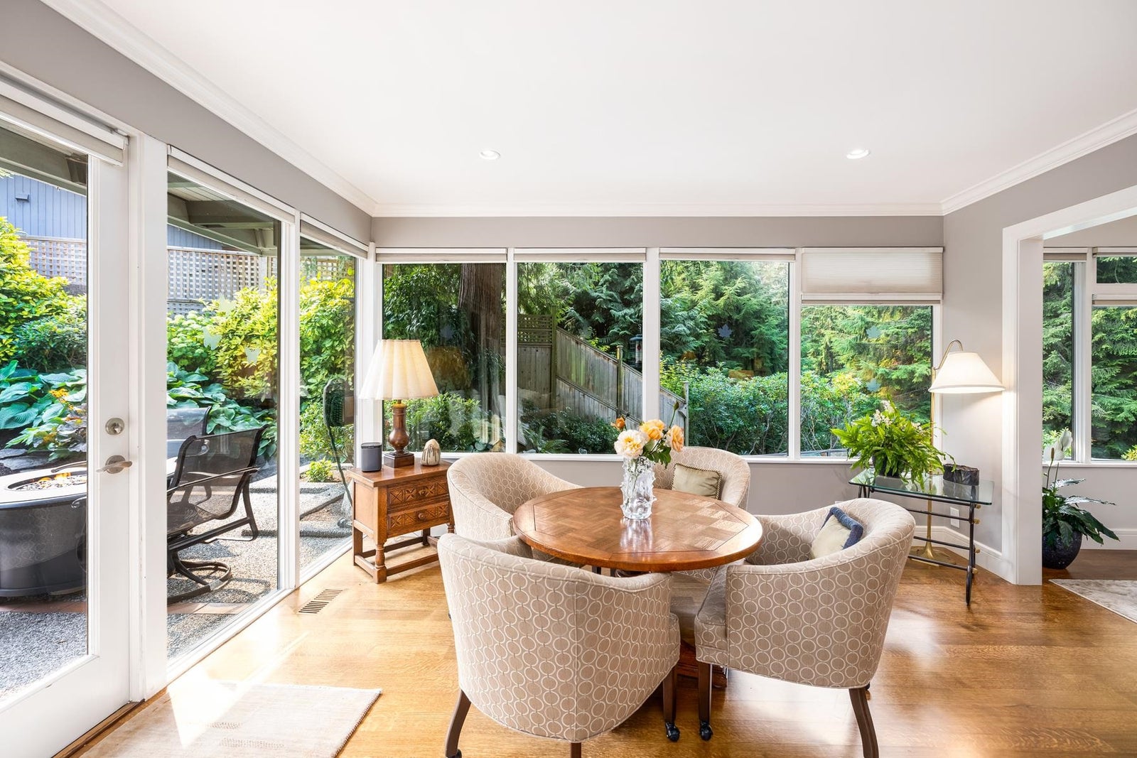 AN ENCHANTING FAMILY HOME! Spectacular established gdns, majestic trees, greenbelt setting, idyllic pool, hot tub & flagstone decks create the magic. Inside is immaculate & traditional w a unique MCM vibe. Sliders, fr doors, skylights, wrap around upper deck & lg windows bring the outside in. Inviting kitchen w dble wall ovens, gas stove, granite counters, sit at isl & skylights. Reimagined in 2014 w no expense spared: new kitchen & bathrms, exterior cladding, furnace, roof, b/u generator, 220 AMP electrical panel, H/W On Dem, real H/W flrs, gas f/p, laundry up. Stunning connection to sundrenched lot from every rm. Obsessively maintained inside & out, on highly coveted dble wide fam-oriented st. Centrally located-walk to Handsworth & Cleveland Elem. Min to Edgemont Vill, trails & skiing.