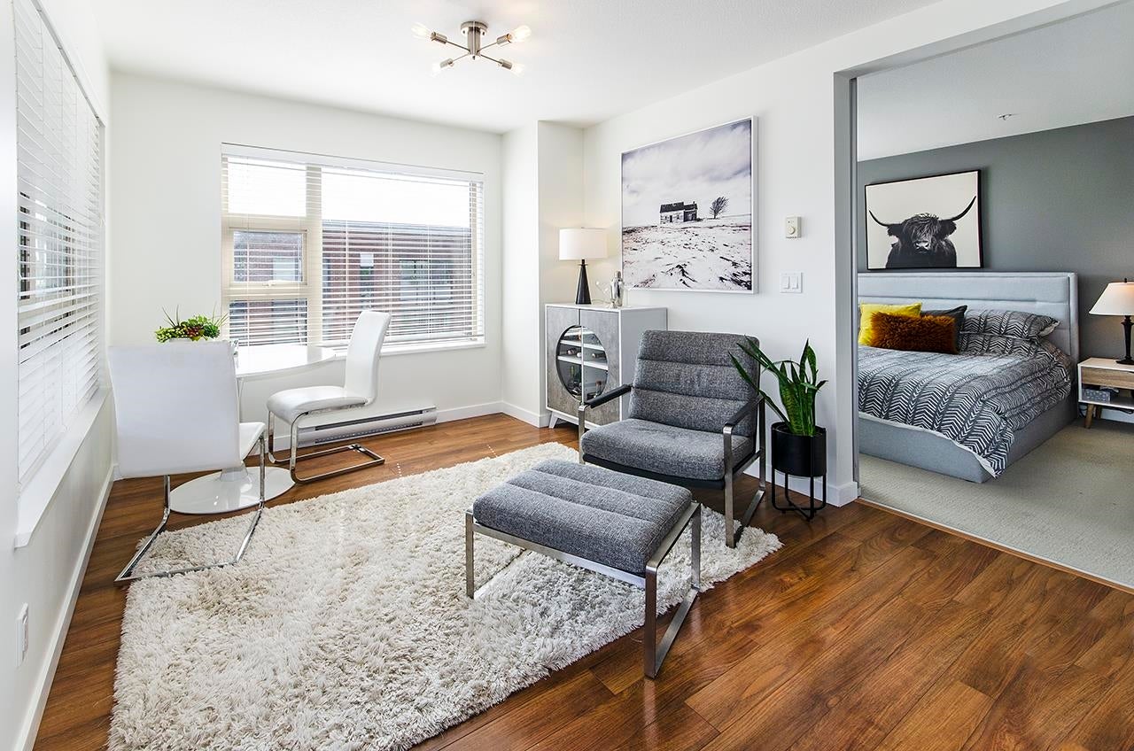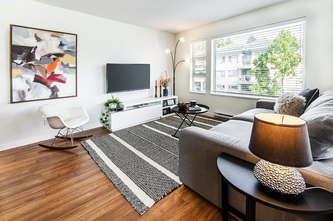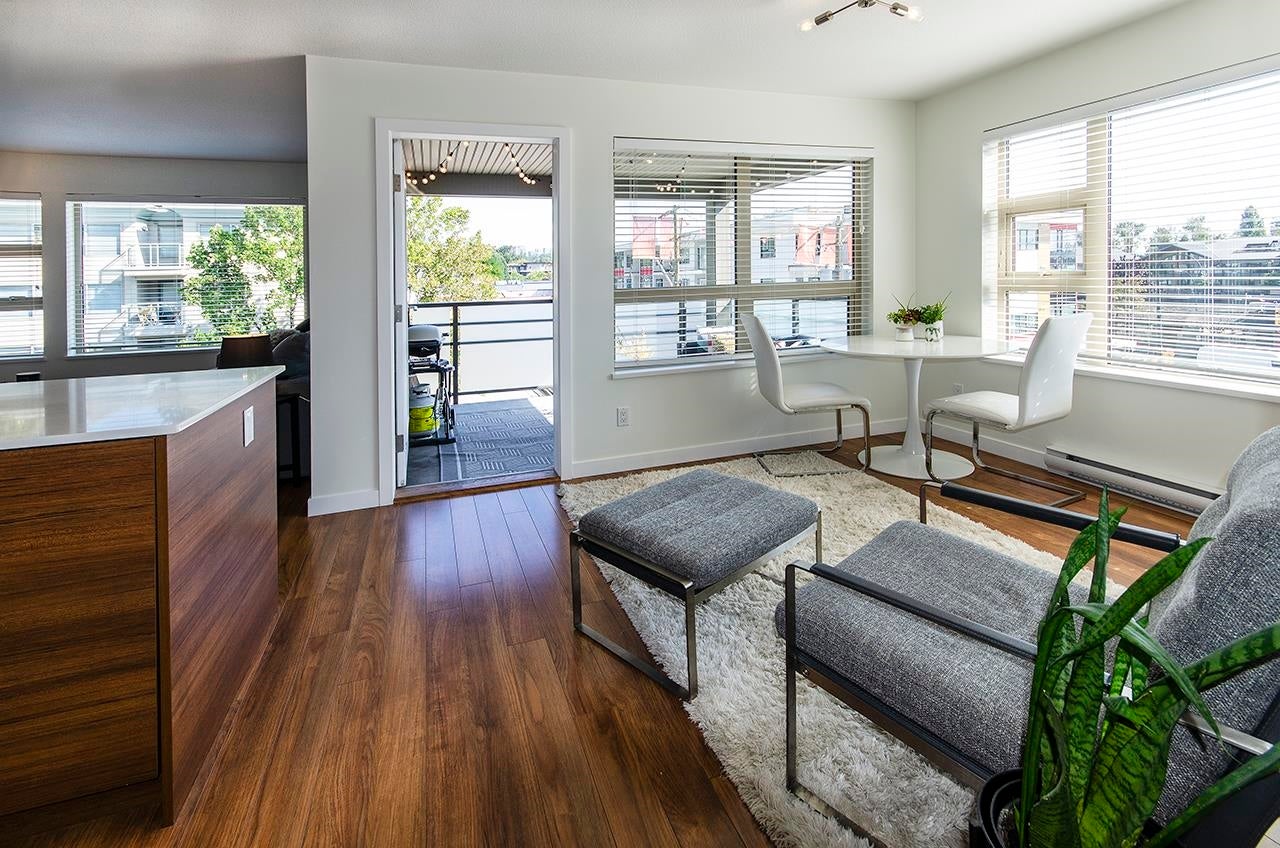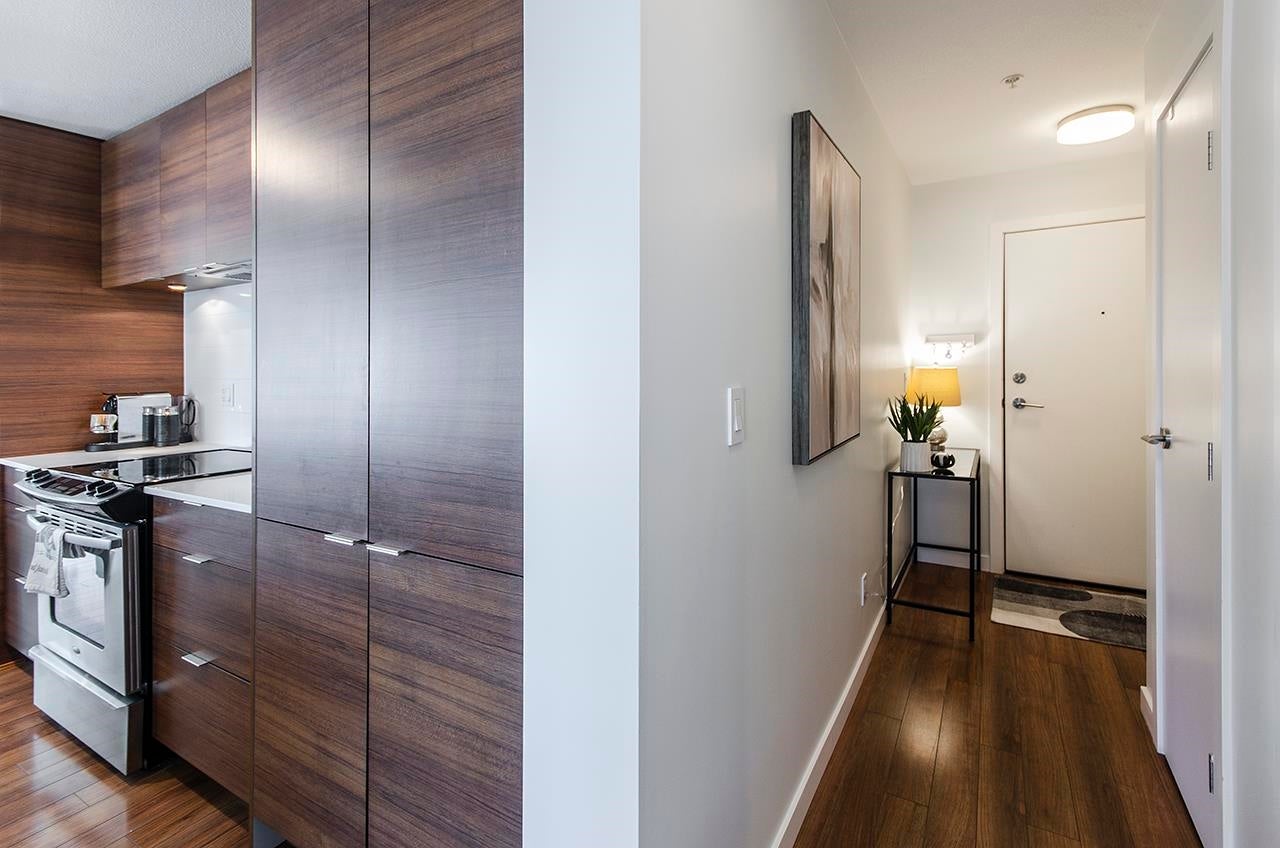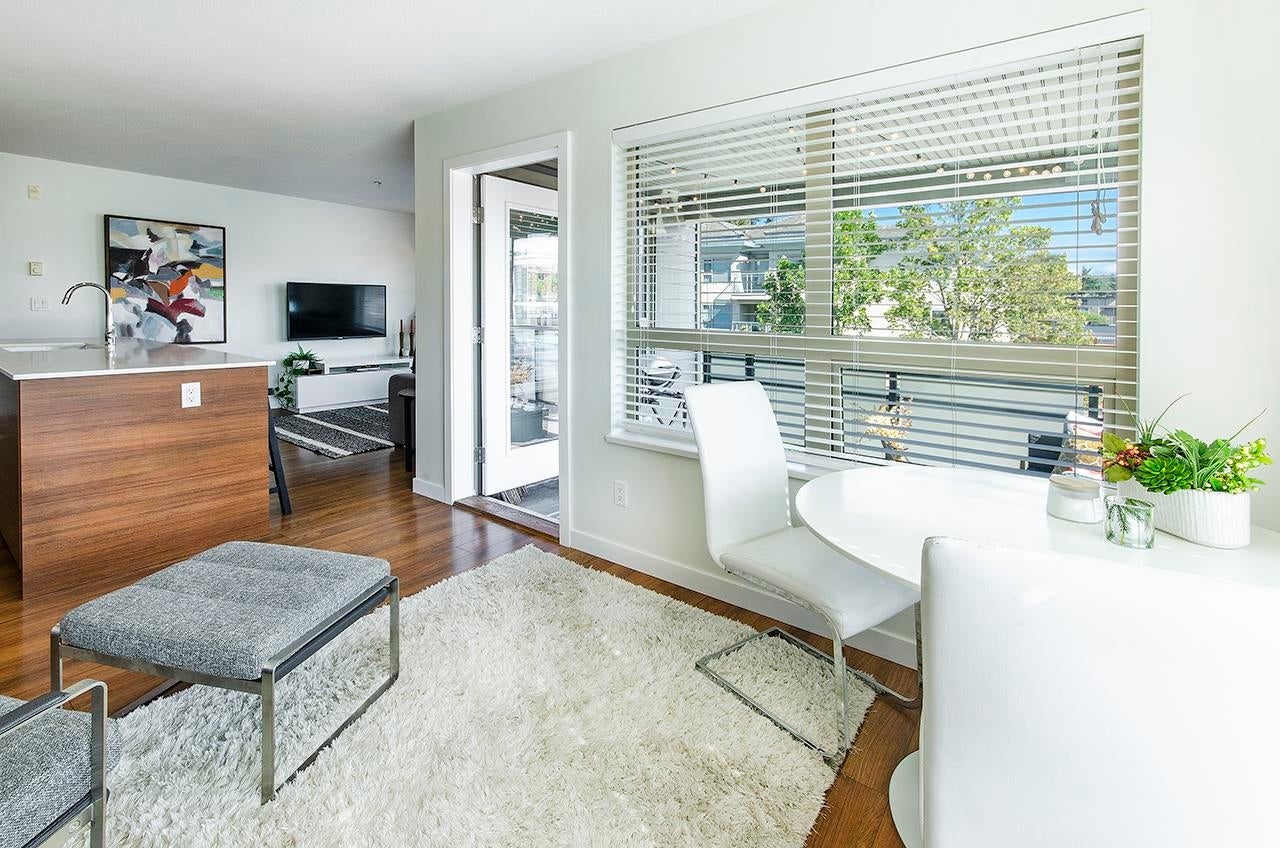 THE BEST CORNER UNIT offering S/E exposure, w oversized windows for loads of natural light. This well thought-out flr plan has a unique open concept living space w 2 good sized bedrooms that are well separated. Gourmet kitch w quartz countertops, lg island w seating for 4, SS appliances & pantry. Spa primary ensuite w deep soaker tub, sep glass shower & lots of counter space. Second bedroom has bath w shower & murphy bed. A spacious, private balcony for BBQs or green thumbs. Freshly painted w attractive panelling in kitchen creates a great canvas. In suite laundry. Pets welcome w lovely trails very close by. Well equipped gym, party rm & bike room in building. Shopping, trails, restaurants & transit all a short walk away. 1 parking, 1 locker & bike storage.